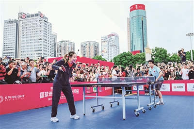 4月20日,国际乒联成立100周年“国球进公园·百园齐挥拍”暨2026年世界乒乓球日贵阳主会场活动在贵阳筑城广场举行。国际乒联执委、乒乓球奥运冠军刘诗雯等在现场与千余名乒乓球爱好者共庆世界乒乓球日。